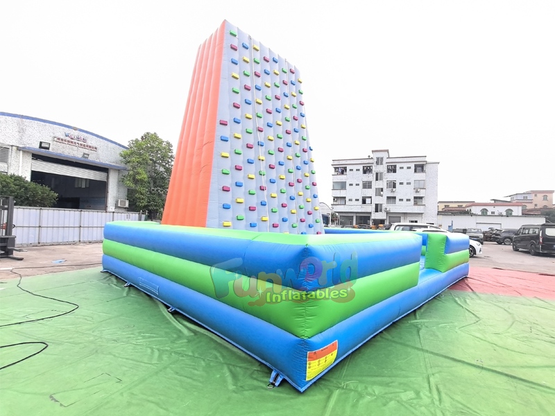 This rock climber inflatable climbing wall, it's constructed from heavy-duty, commercial-grade PVC tarpaulin, typically consists of a tall, vertical climbing tower with multiple rows of durable hand-holds, surrounded by a large, cushioned inflatable base for safety. These versatile units are ideal for school carnivals, corporate team-building, and birthday parties, providing a "wow" factor that draws crowds. Setup is efficient, requiring a powerful blower (often included) and a relatively small footprint, allowing them to be installed in both indoor and outdoor venues. They are designed to hold significant weight, often supporting participants up to 200–250 lbs.