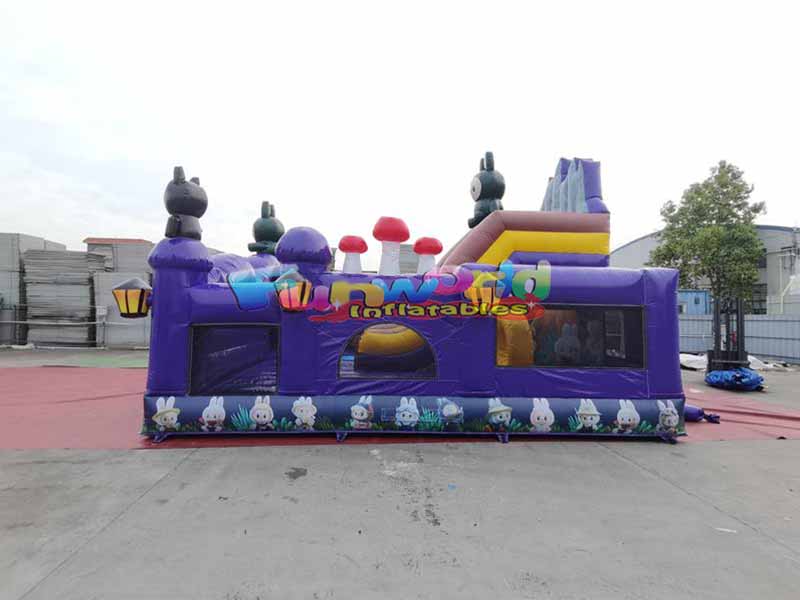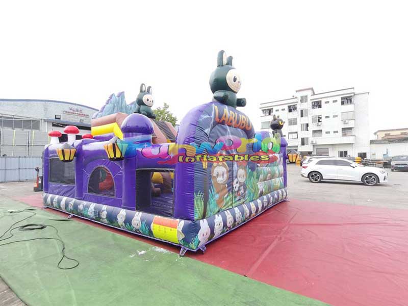 La casa inflable para saltar Labubu, inspirada en el popular juguete IP LABUBU, presenta un diseño lleno de fantasía y diversión.