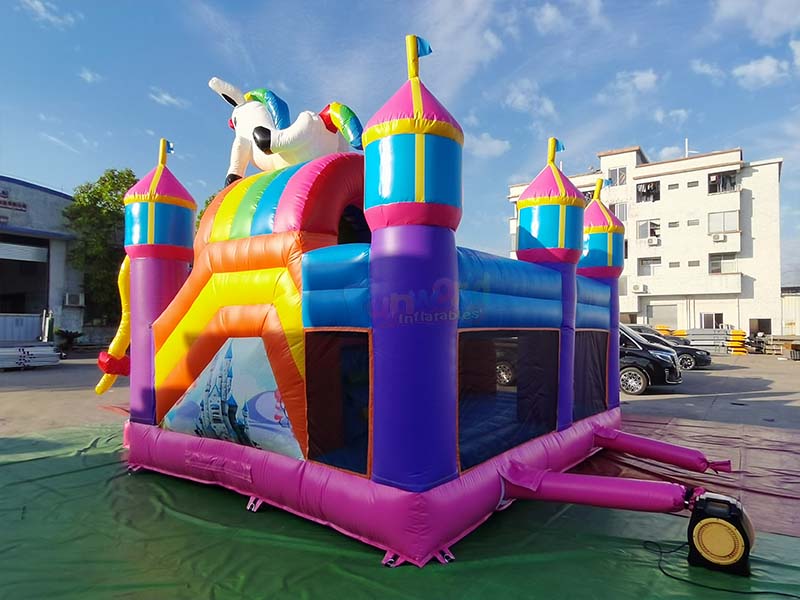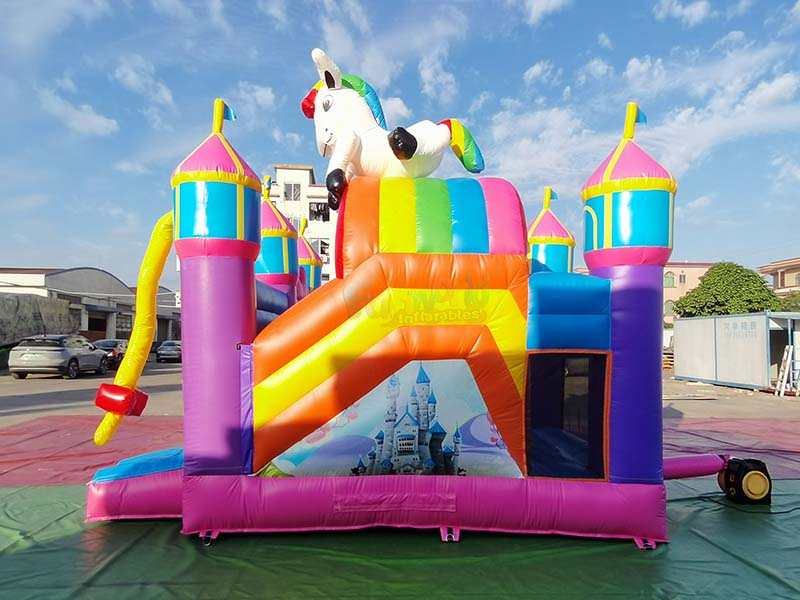Casa inflable Moonwalk con unicornio para patio trasero al aire libre