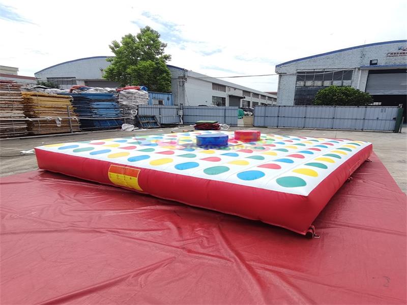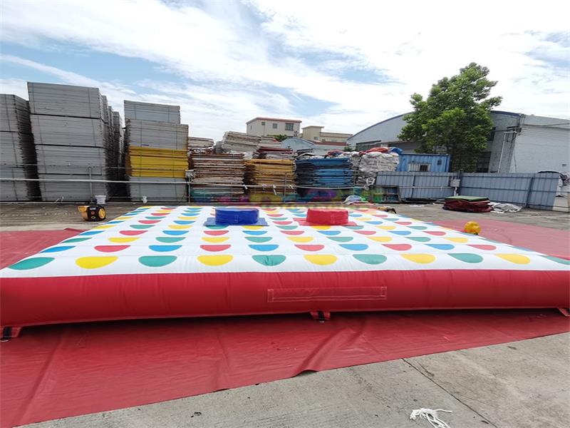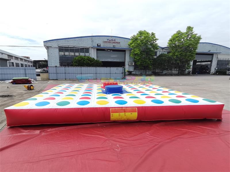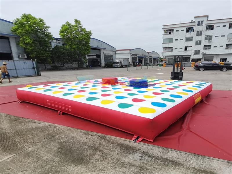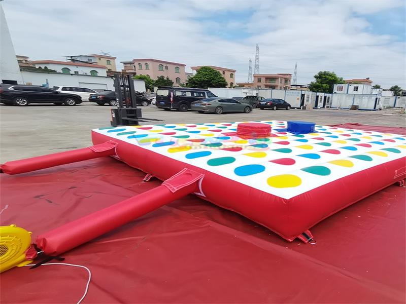 Juego inflable Twister de gran tamaño. Este accesorio interactivo inflable está hecho de PVC de alta resistencia, con una estructura robusta y duradera. Su diseño modular permite un rápido montaje y almacenamiento.